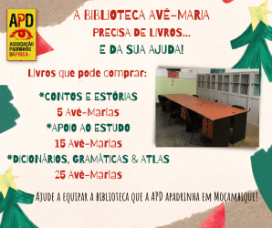 A APD e a AOC, em parceria, proporcionaram o mobiliário para a Biblioteca Avé Maria, no Lar em Moçambique. O próximo desafio é rechear esta biblioteca com o que é devido: os Livros!
